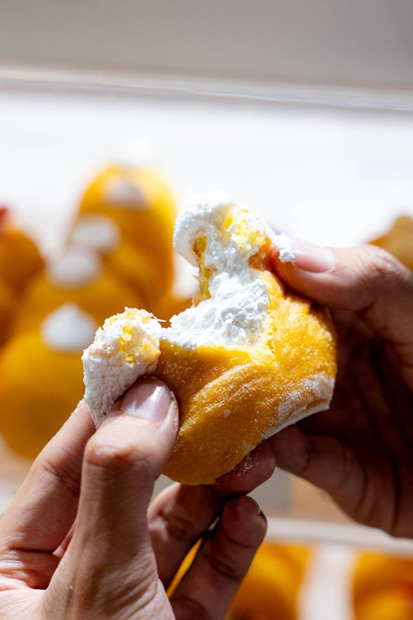 แป้งนุ่มหนึบไม่เหมือนโดนัททั่วไปสไตล์ญี่ปุ่น ไส้ครีมสดแน่นๆ ทะลักทุกคำ กัดแล้วคือฟินขั้นสุด งานนี้คิวสายหวานห้ามพลาด!