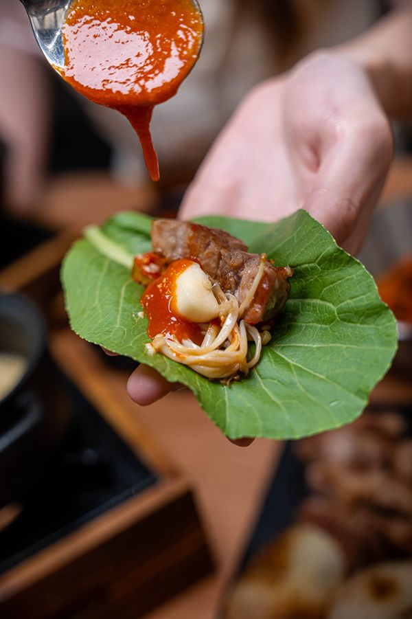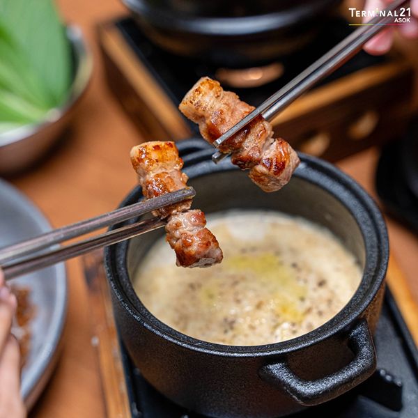 ปิ้งย่างเกาหลี ทรัฟเฟิลฟองดู พร้อมเครื่องเคียง 14 อย่าง! สายปิ้งย่างต้องจดพิกัดนี้ด่วน เพราะหมูเค้าไม่ธรรมดา! ใช้เทคนิค Wet-Aged บ่มหมูในอุณหภูมิ -1 ถึง 1°C ทำให้เนื้อนุ่ม จุ๊ยซี่ ละมุนละลายในปากแบบไม่ต้องพึ่งน้ำจิ้มเยอะ