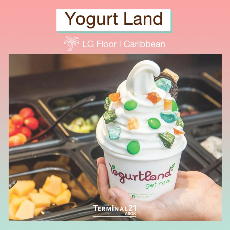 ที่ Terminal21 Asok เค้าก็มีโฟรเซนโยเกิร์ตสุดป๊อปปูล่าอย่าง “โยเกิร์ตแลนด์” ด้วยนะ ที่นี่เป็นร้านไอศกรีมโยเกิร์ตที่ให้เลือกกด เลือกตักเครื่องใส่กันตามใจชอบ ทำจากนมวัวแคลิฟอร์เนียแท้ๆ โยเกิร์ตทุกรสชาติของเค้า ไม่ใส่สารปรุงแต่งกลิ่น รส และสีใดๆ ด้วย รสชาติแนะนำ ได้แก่ Madagascar Vanilla Bean, Maqui Berry Tart, Salted Caramel Pecan, และ Strawberry Lemonade Sorbet แต่เชื่อเถอะว่าเราไม่มีทางรู้ว่าอร่อยแค่ไหนหรอก ถ้าไม่ได้ไปลองชิมด้วยตัวเอง ใครอยาก “Get Real” ไปชิมรสชาติและคุณภาพไอศกรีมโยเกิร์ตของเค้า ตามมาที่ Terminal21 Asok เลย!